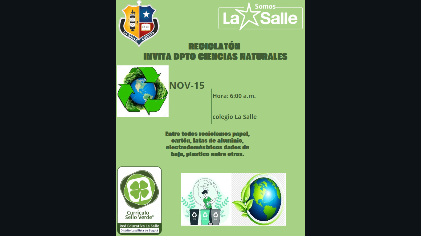 | 2025-T500 | | Trabajador | Mejia Pallares Javier Alberto | JORNADA DE RECICLAJE | 2025-10-31 06:00:00 | 2025-10-31 07:30:00 | Patio central | Ciencias naturales y educación ambiental | jmejia@lasallecucuta.edu.co | +573208038122 | | No | 2025-11-05 08:12:34 | Totalmente Satisfecho | Totalmente Satisfecho | Totalmente Satisfecho | Totalmente Satisfecho | Agradecimiento por el apoyo constante en estos espacios sobre el cuidado de nuestra casa común. |